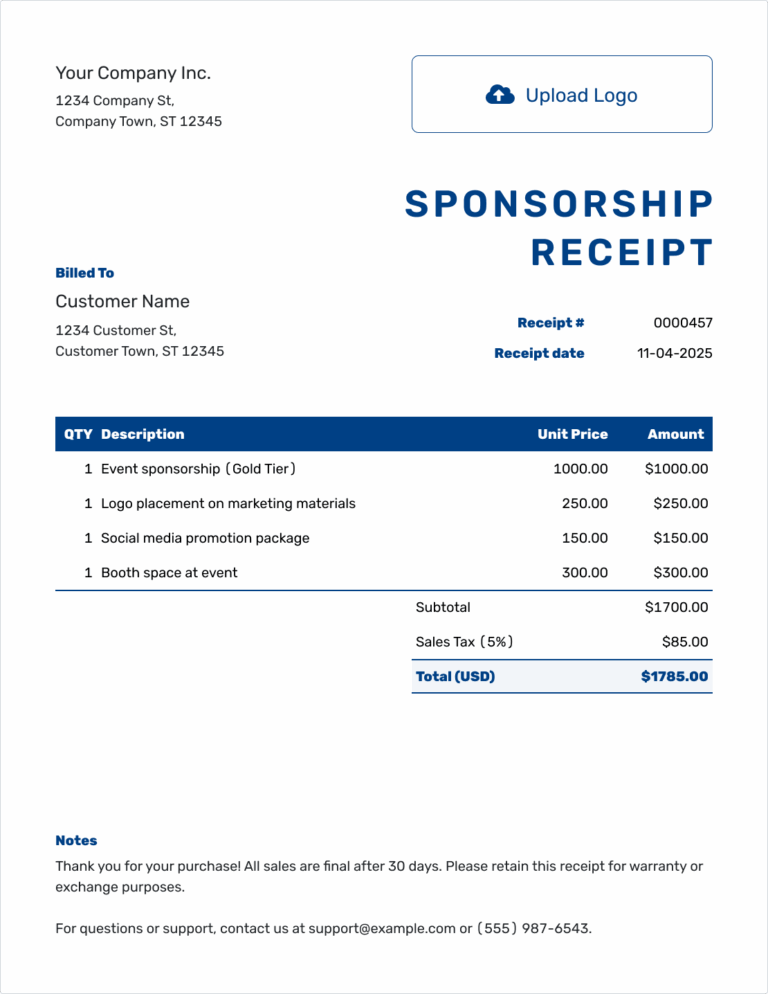 A comprehensive sponsorship receipt template serves as a critical financial document, formally acknowledging the receipt of funds or in-kind contributions...
