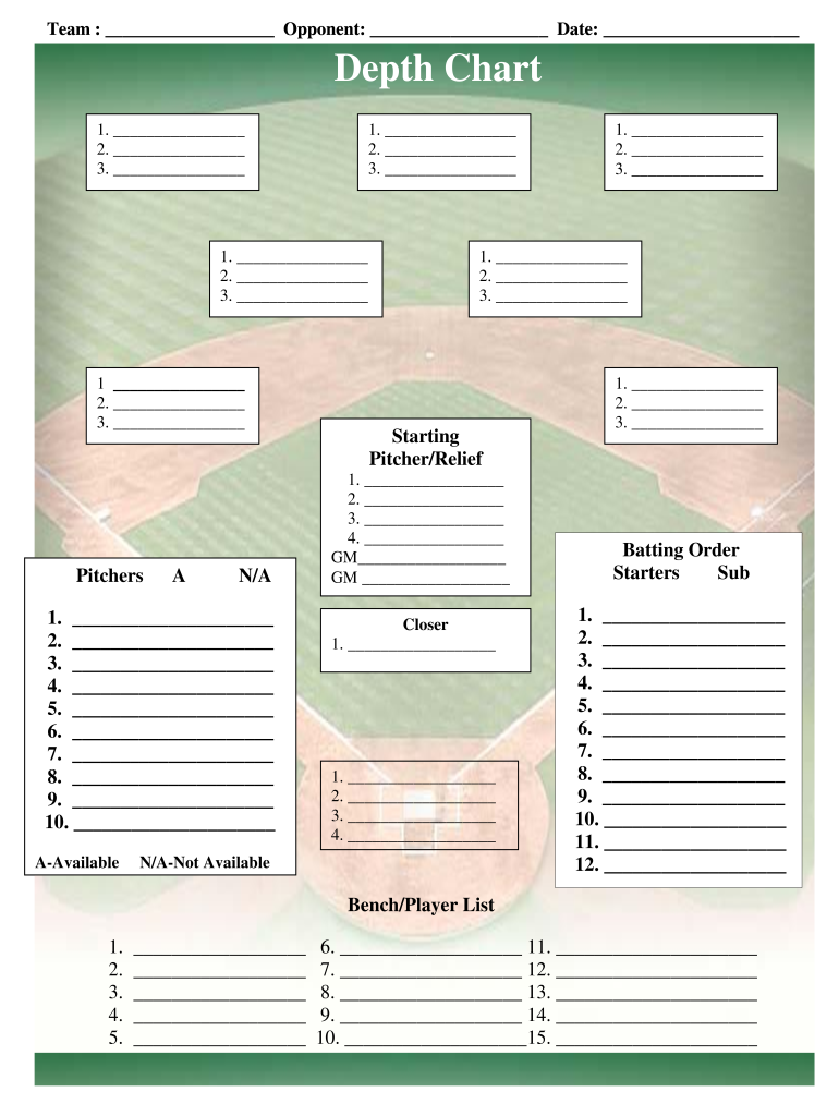 Free Editable Baseball Field Depth Chart Template