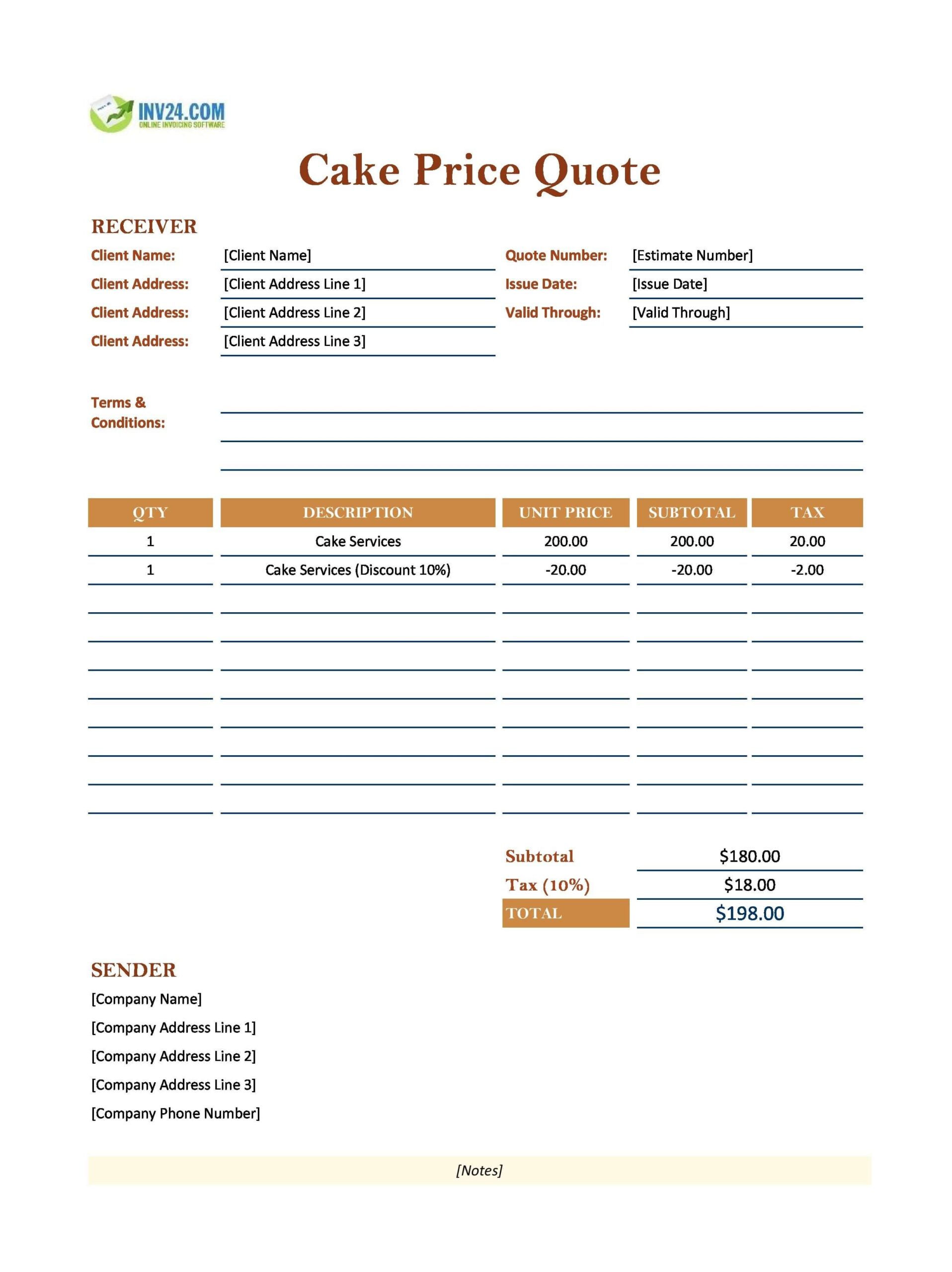 - Wedding Cake Orders: For these highly customized and often significant investments, a detailed quote sheet is essential. It itemizes flavors, tiers, intricate decorations, delivery, setup fees, and any tasting package costs, ensuring the couple understands every component of their order.