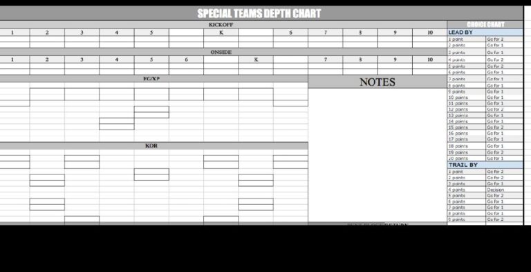 Free Printable Special Teams Depth Chart Template