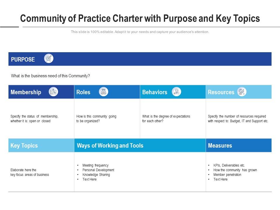 The fundamental principles embedded within a community of practice charter template extend far beyond its primary use, proving remarkably versatile across various professional applications. Its structured layout and emphasis on clear definitions make it an excellent model for other critical organizational documents. For instance, in business reports, its logical flow can serve as a blueprint for structuring comprehensive proposals, project charters, or strategic plans, ensuring all essential components are addressed systematically.