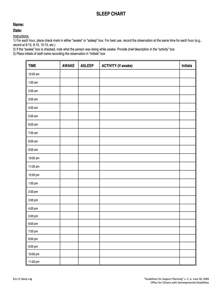 Examples of When Using a Sleep Chart Template For Adults Is Most Effective